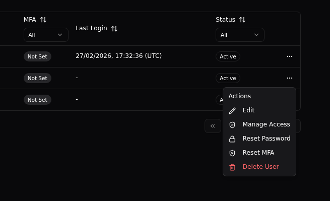 From the Actions dialog ..., you can perform multiple actions on a user level.